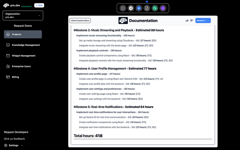 Using pre.dev, founders will quickly find that they can generate a more comprehensive development roadmap in 5 minutes than they could in weeks on their own.